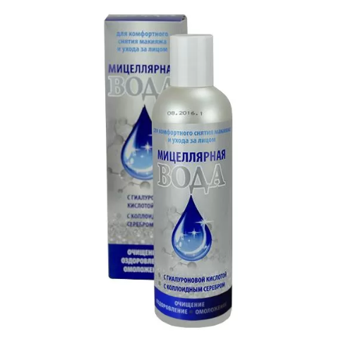 Мицеллярная вода с гиалуроновой кислотой и коллоидным серебром для комфортного снятия макияжа и ухода за лицом.