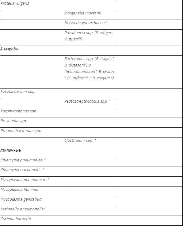 * - Чувствительность к моксифлоксацину подтверждена клиническими данными.