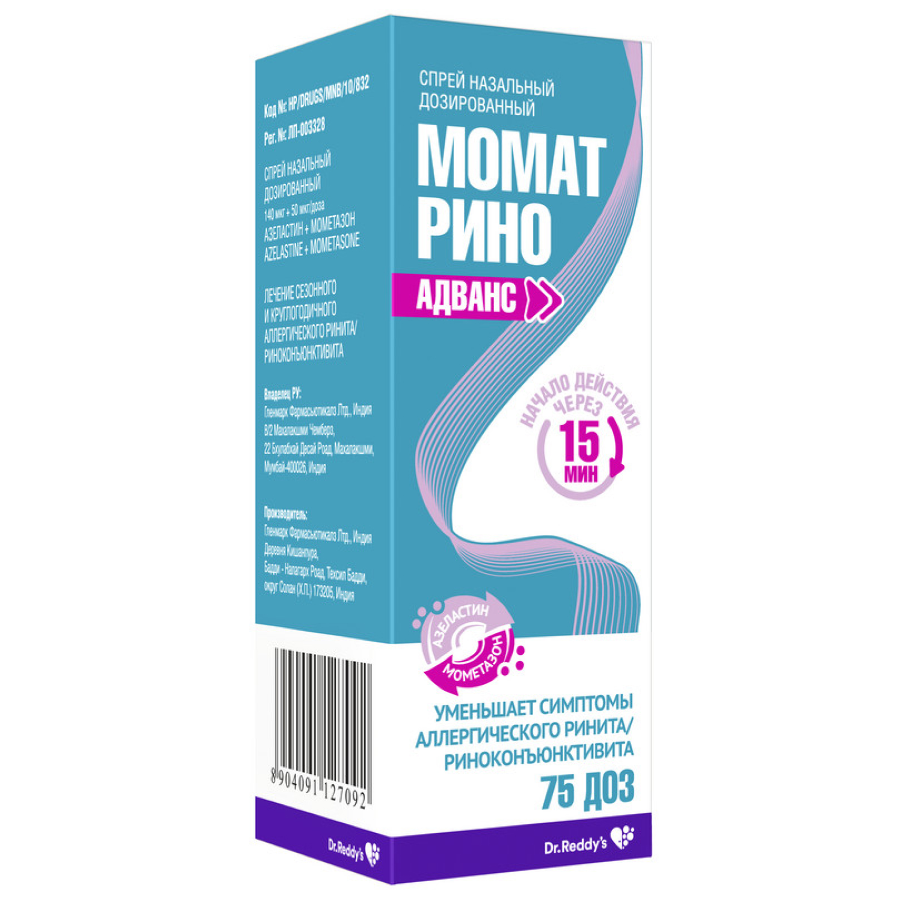 Мометазона фуроат. При интраназальном применении системная биодоступность мометазона фуроата составляет < 1% (при чувствительности метода определения 0,25 пг/мл). Суспензия мометазона очень плохо всасывается в желудочно-кишечном тракте, и то небольшое количество суспензии мометазона, которое может попасть в желудочно-кишечный тракт после носовой ингаляции, еще до экскреции с мочой или желчью подвергается активному первичному метаболизму.