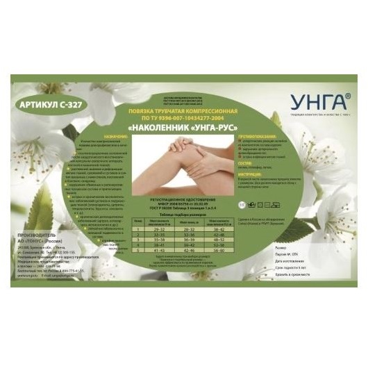 УНГА-РУС НАКОЛЕННИК ПОВЯЗКА ТРУБЧАТАЯ КОМПРЕССИОННАЯ изготавливается из медицинского трикотажа.