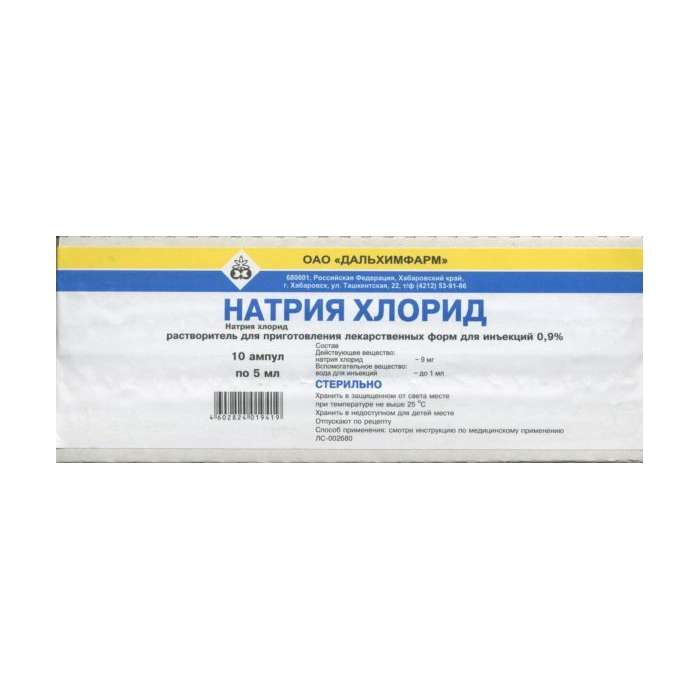 Раствор натрия хлорида 0,9 % изотоничен плазме крови человека. В малых объемах используется в качестве растворителя для приготовления инъекционных растворов лекарственных средств.