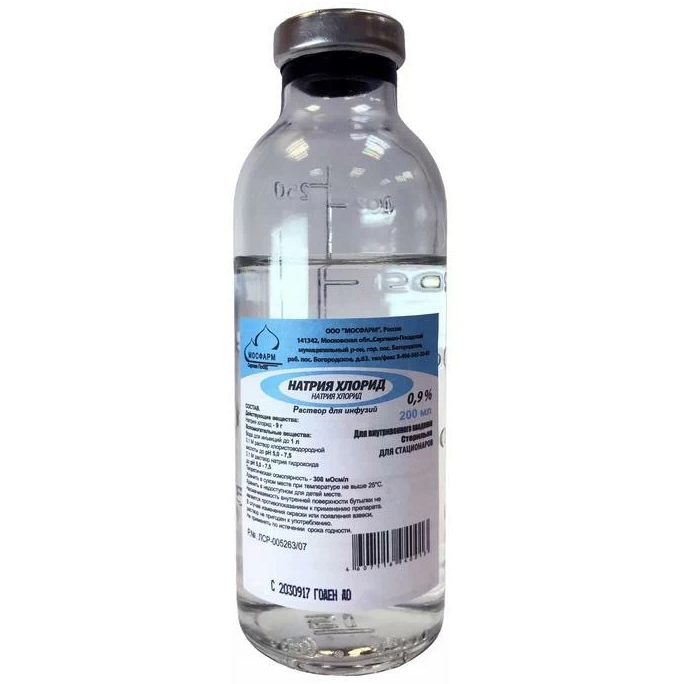 Активное вещество: натрия хлорид - 9 г.