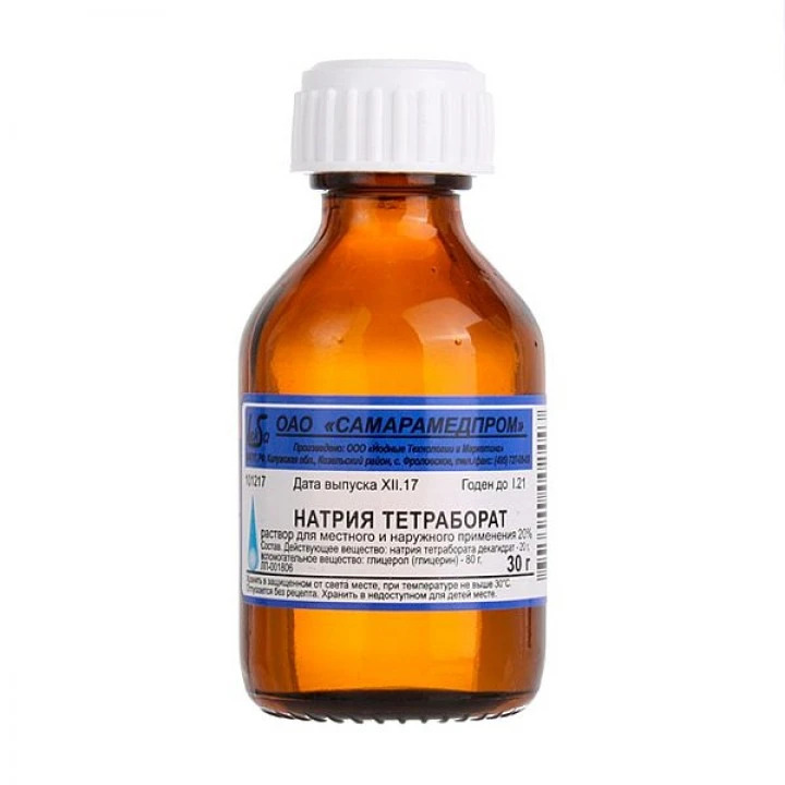 Действующее вещество: натрия тетрабората декагидрат - 20 г.