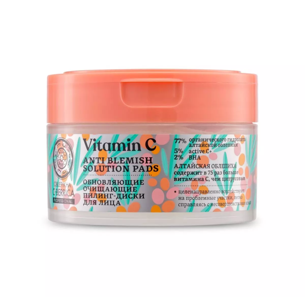 Обновляющие очищающие пилинг-диски для лица помогут легко справиться со всеми несовершенствами кожи! Глубоко очищают кожу от загрязнений, уменьшают воспаления, сужают расширенные поры, предотвращая образование воспалений и жирного блеска. Активная форма витамина С «Active C+» подходит даже для чувствительной кожи, отлично воздействуя на верхние слои, защищая от УФ-излучения. Органический гидролат алтайской облепихи благодаря высокому содержанию витамина С, ускоряет процессы восстановления, способствует удержанию влаги в коже, возвращая ей упругость и эластичность. BHA-кислоты оказывают противовоспалительное действие, нормализуют pH кожи и работу сальных желез, сужая поры, уменьшая черные точки и осветляя пост-акне.