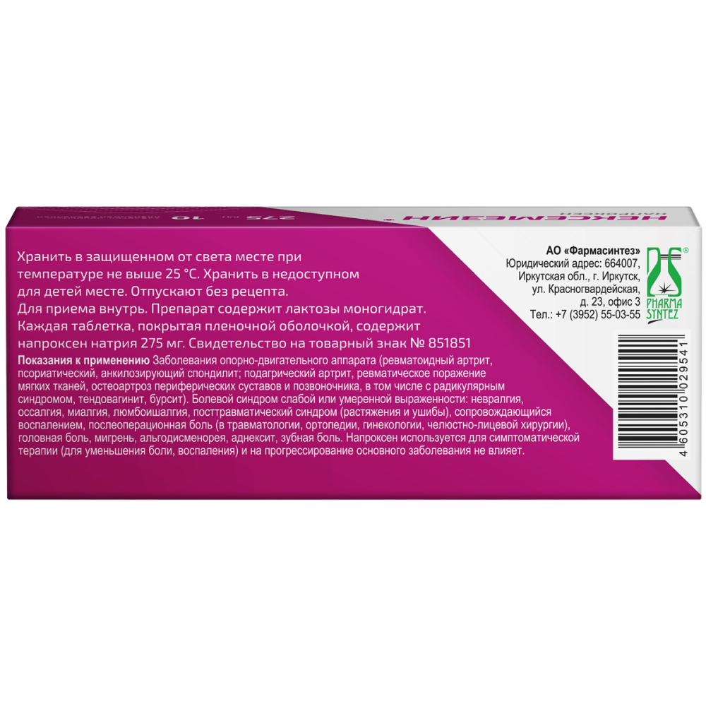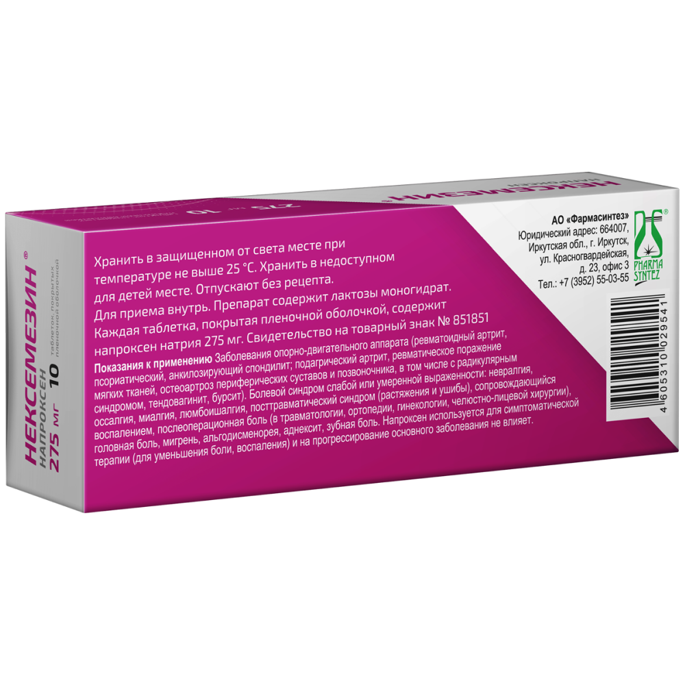 Действующее вещество: напроксен натрия 275 мг/ 550 мг;