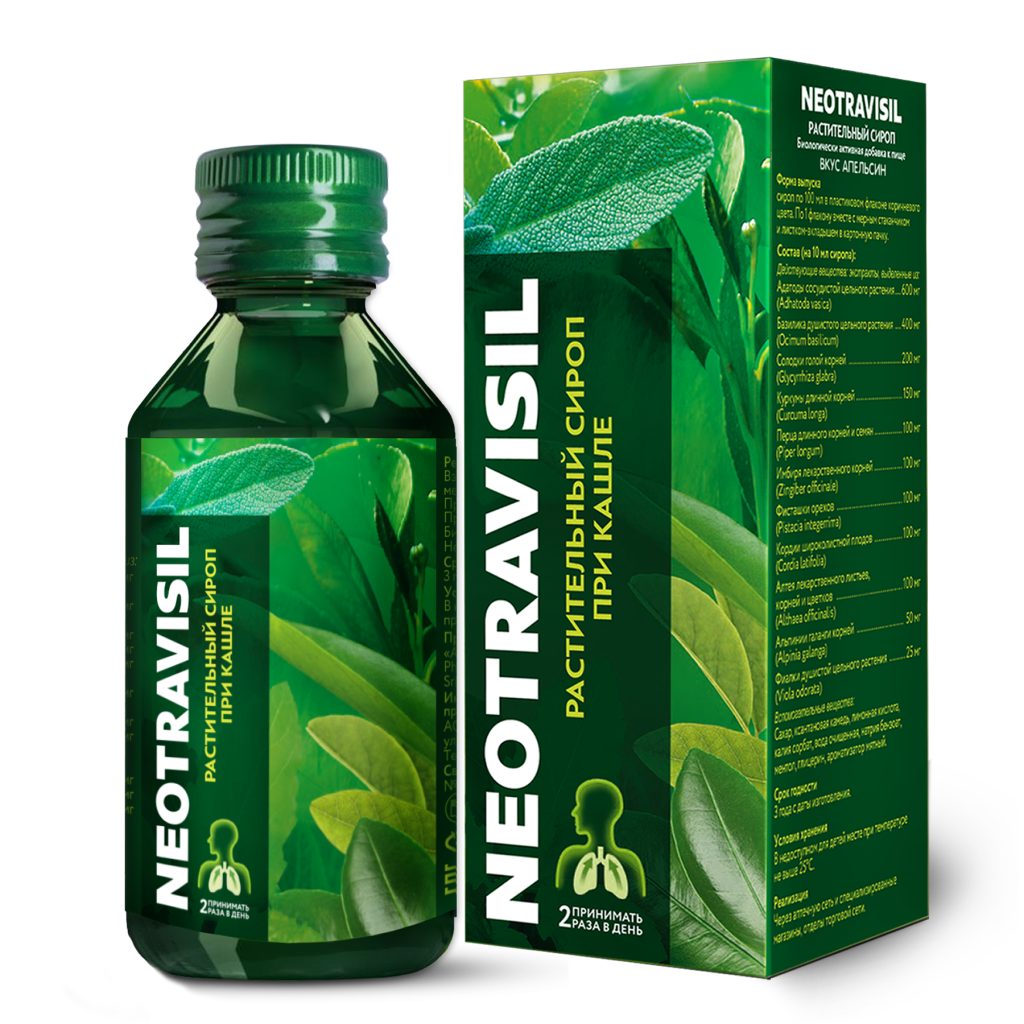 Сила 11 растений в составе сиропа NEOTRAVISIL способствует снижению риска развития острых и хронических воспалительных заболеваний дыхательных путей, сопровождающихся сухим кашлем или кашлем с трудноотделяемой мокротой (фарингит, ларингит, в том числе «лекторский», трахеит, бронхит).