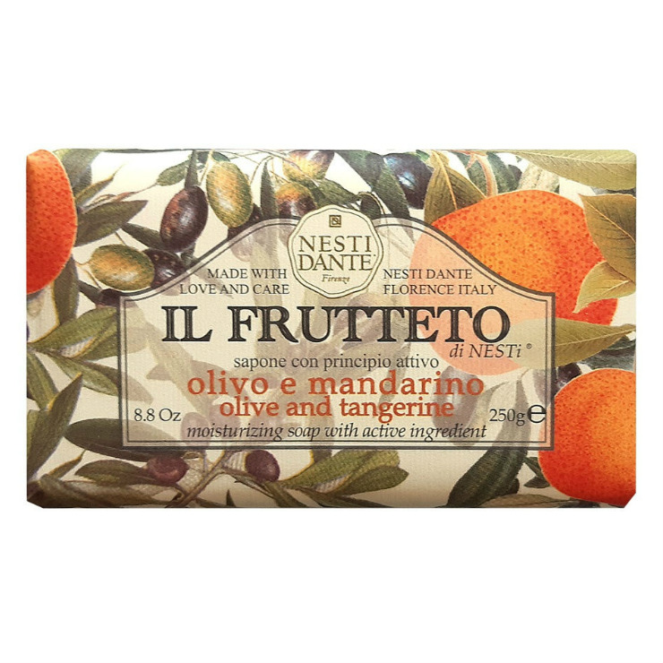 Nesti Dante - экологически чистое мыло, обогащенное растительными экстрактами и маслами. Производится во Флоренции с 1947 года по старинной котловой технологии варки мыла. Кулинарные традиции Тосканы, и Флоренции в частности, несколько отличаются от кухни остальной Италии. Но что остается неизменным так это большое разнообразие фруктов на десерт. Линия мыла Il Frutteto (Фруктовое) – настоящая фруктовая корзина с итальянским темпераментом! Мыло Pure olive oil & Tangerine (Оливковое масло и мандарин) имеет нейтральный растительно-фруктовый аромат, без ярких фруктовых акцентов. Экстракт листьев оливы (olea europaea leaf extract) - основной компонент оливы - олеуропеин - мощный антиоксидант. А также он содержит флавоноиды, витамины А, D, Е, К, значительное количество витамина С, лютеолин, танины, дубильные вещества, органические кислоты.