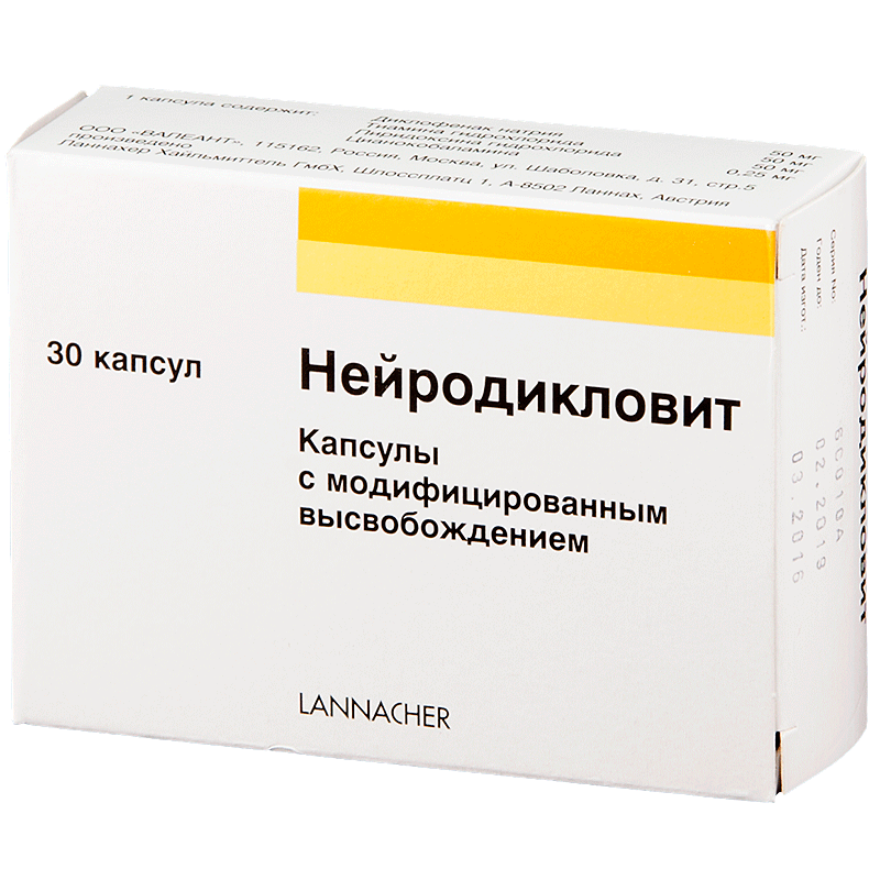 При одновременном применении Нейродикловит увеличивает вероятность возникновения побочных эффектов других НПВС и ГКС (желудочно-кишечные кровотечения), токсичность метотрексата и нефротоксичность циклоспорина.