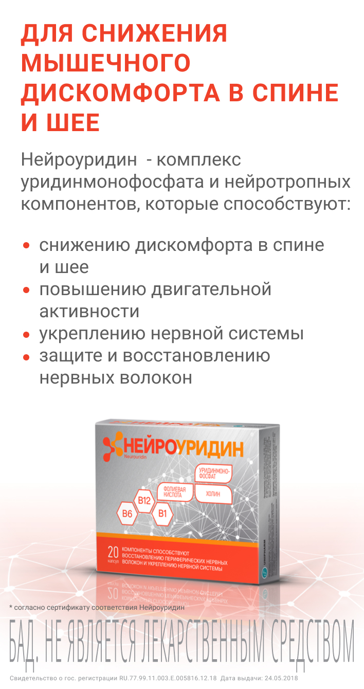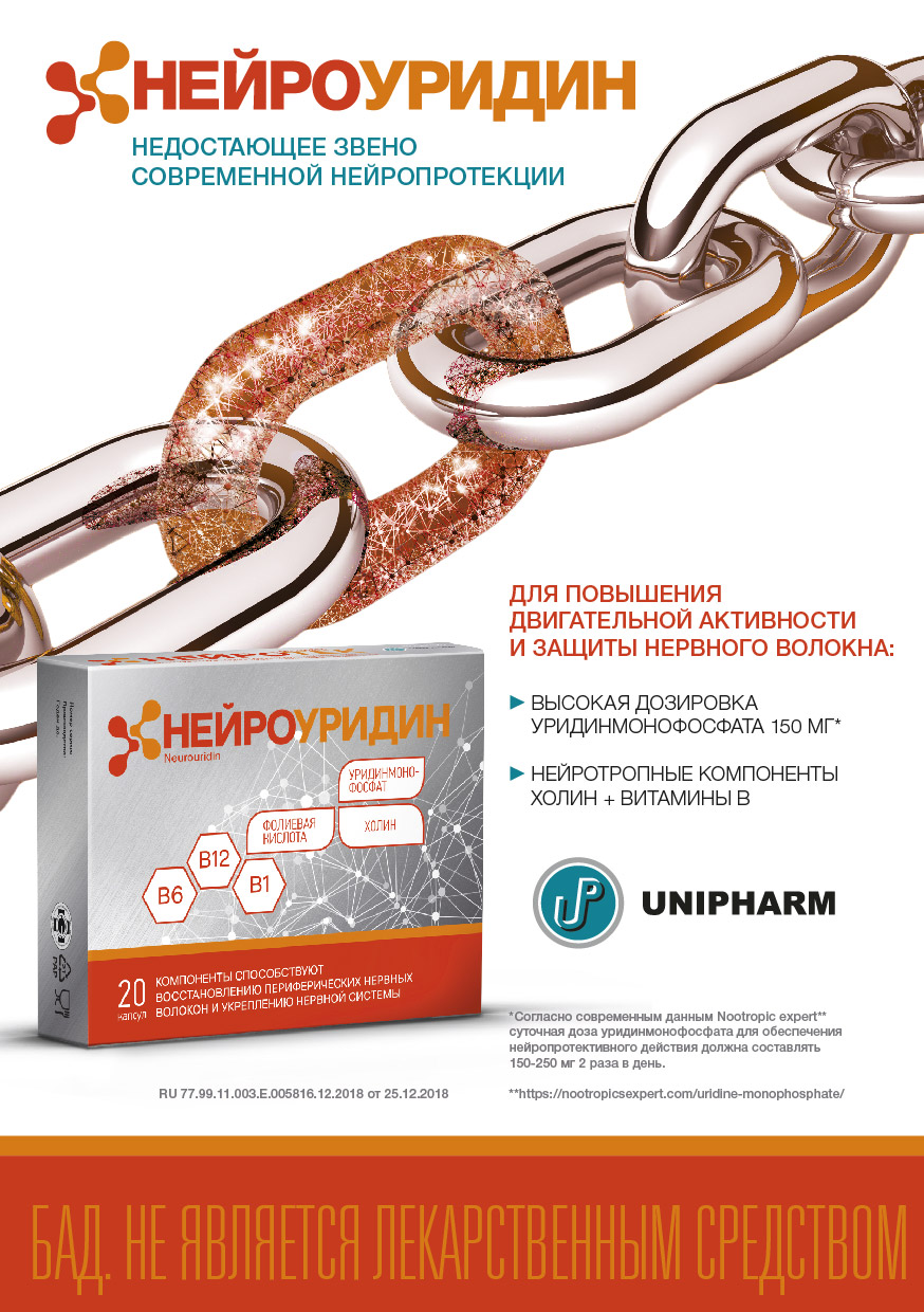 Нейроуридин - специально подобранная комбинация нейротропных веществ: витаминов группы В (В1, В6, В9, В12), нуклеотида (уридинмонофосфат) и холина, необходимых для восстановления нервных волокон, улучшения нервной проводимости, укрепления нервной системы и общего состояния организма. Свойства продукта обусловлены свойствами компонентов, входящих в его состав.
