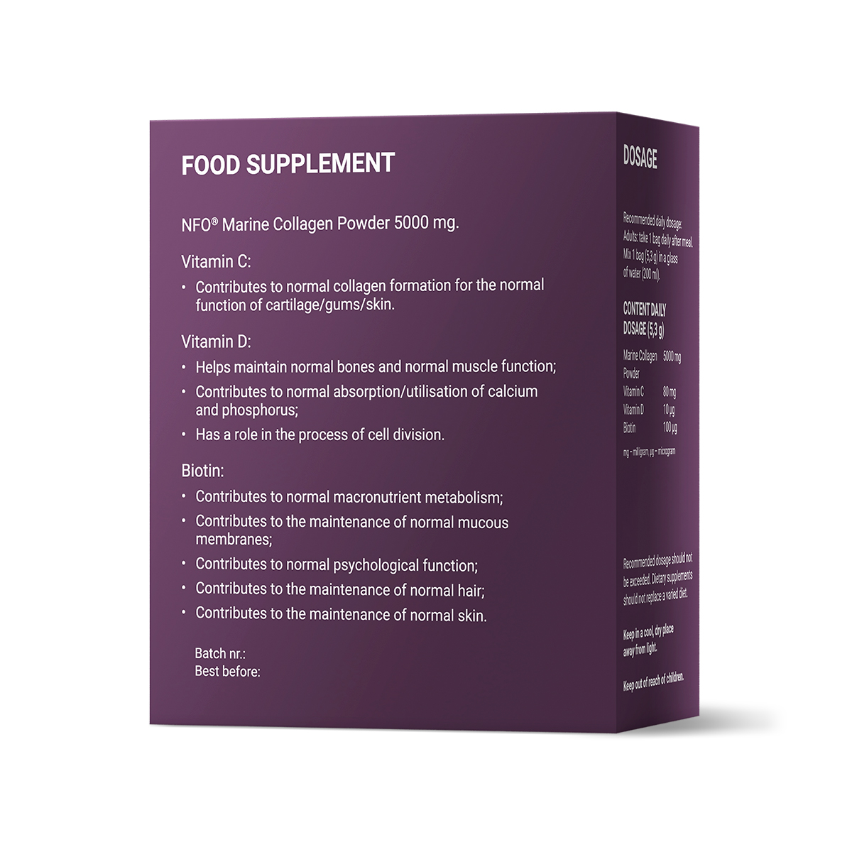 Рекомендуется в качестве БАД к пище дополнительного источника глицина, пролина, гиалуроновой кислоты, витамина С, Д3 , биотина, содержащий оксипролин.