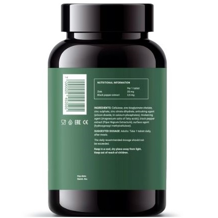 Экстракт черного перца содержит алкалоид пиперин, который значимо повышает усвоение цинка организмом, усиливает эффективность его действия. Кроме того, пиперин обладает антиоксидантной активностью, защищая клетки от окислительного стресса.
