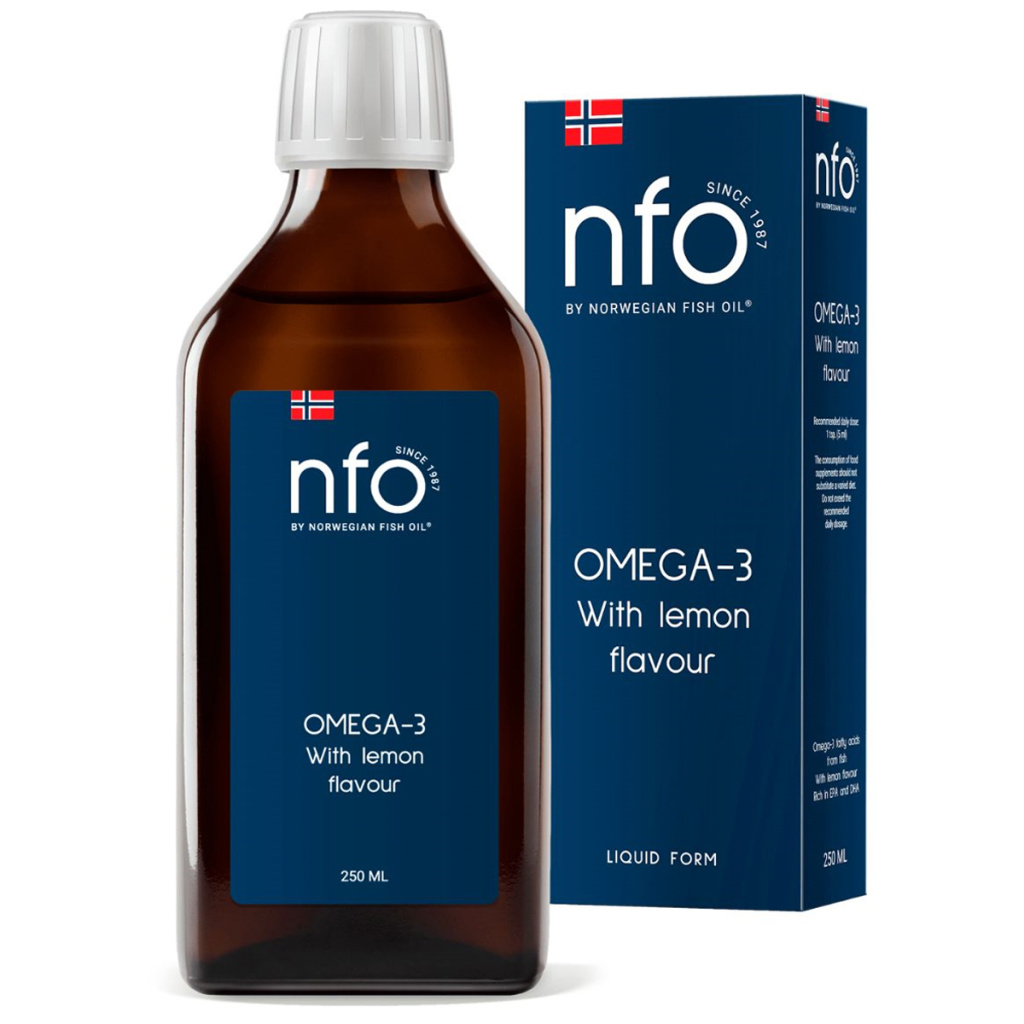 NFO® Omega-3 with lemon flavor (НФО Омега-3 со вкусом лимона) - натуральный высокоочищенный рыбий жир в жидкой форме со вкусом лимона.