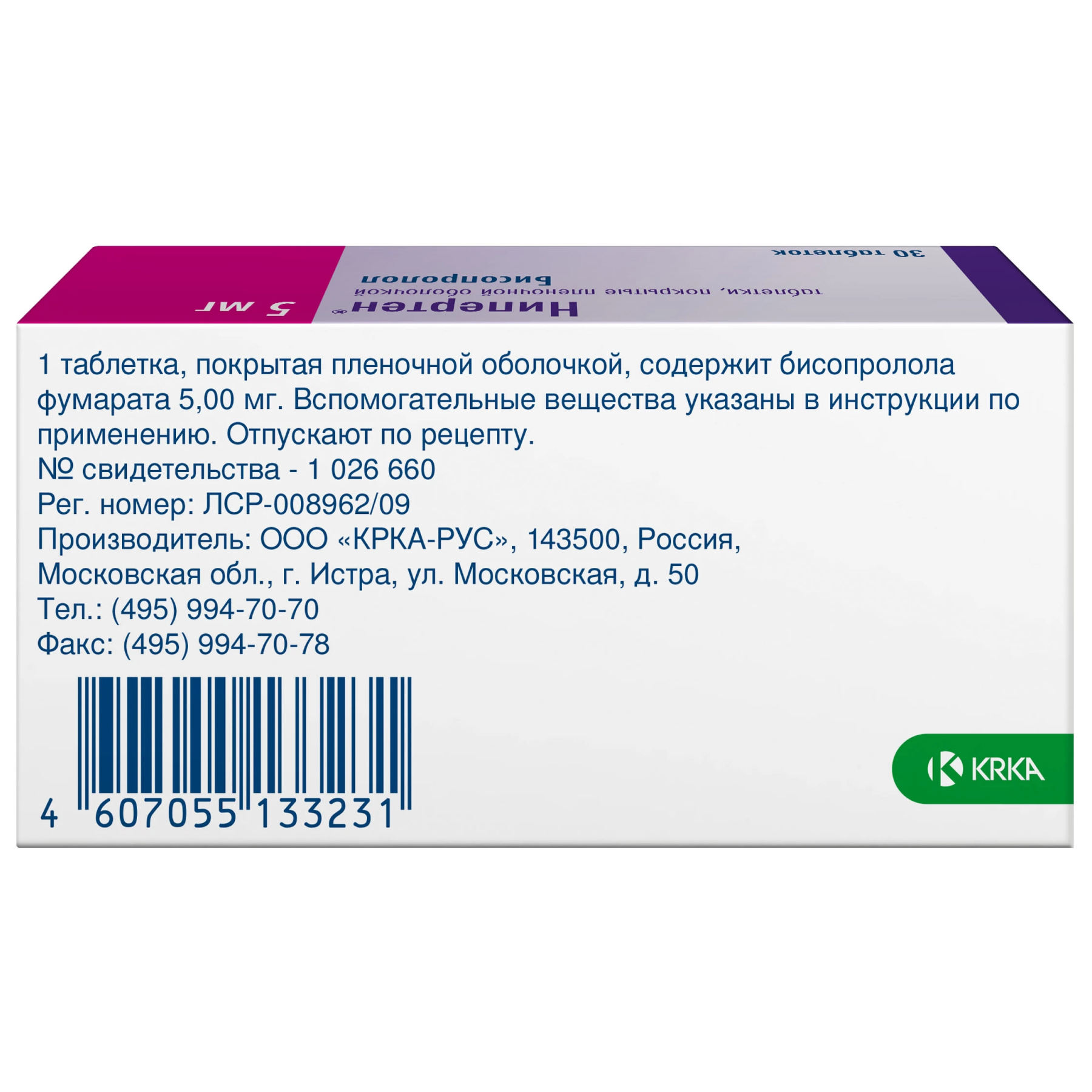 Активное вещество: бисопролола фумарат 5 мг;
