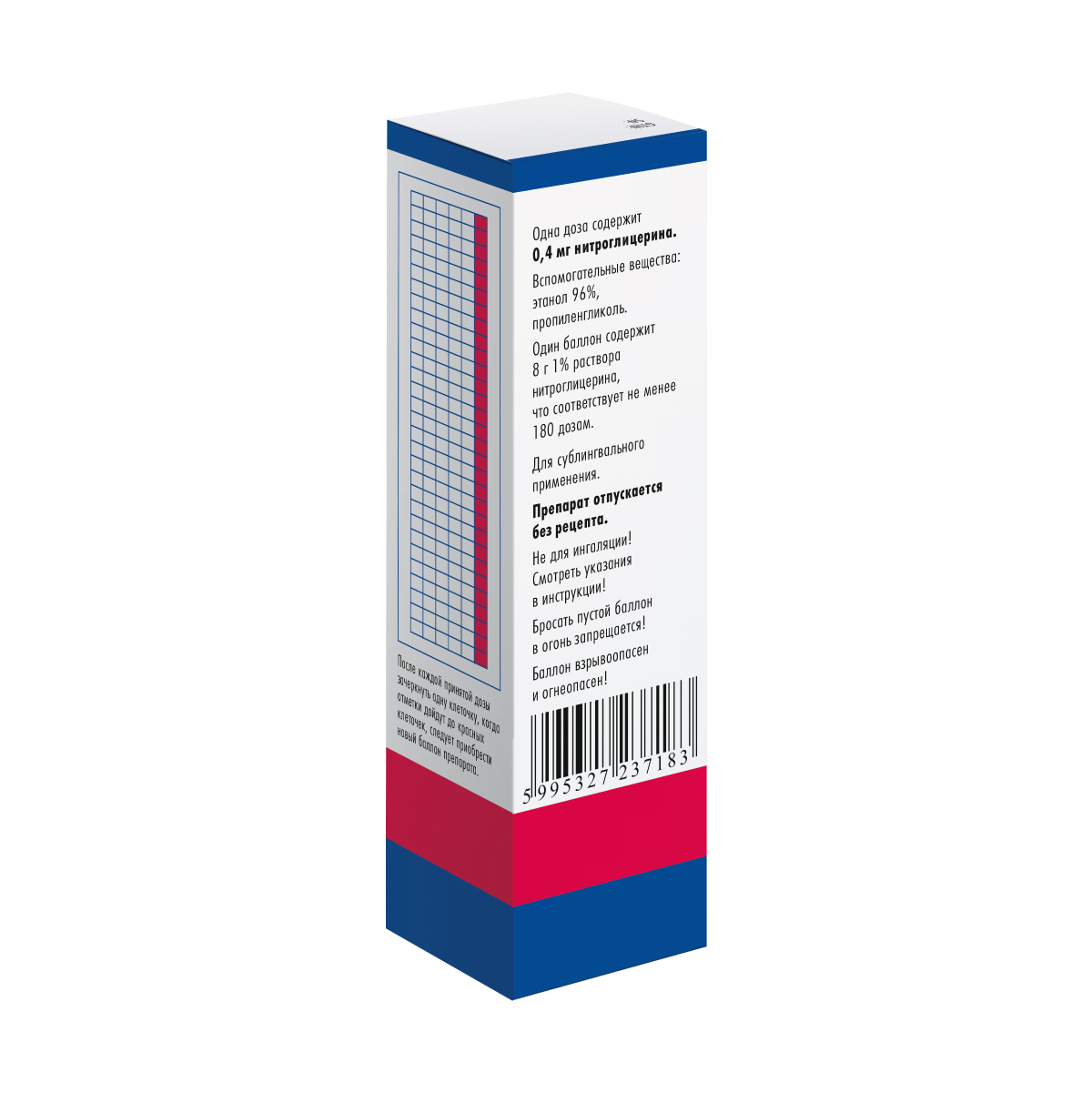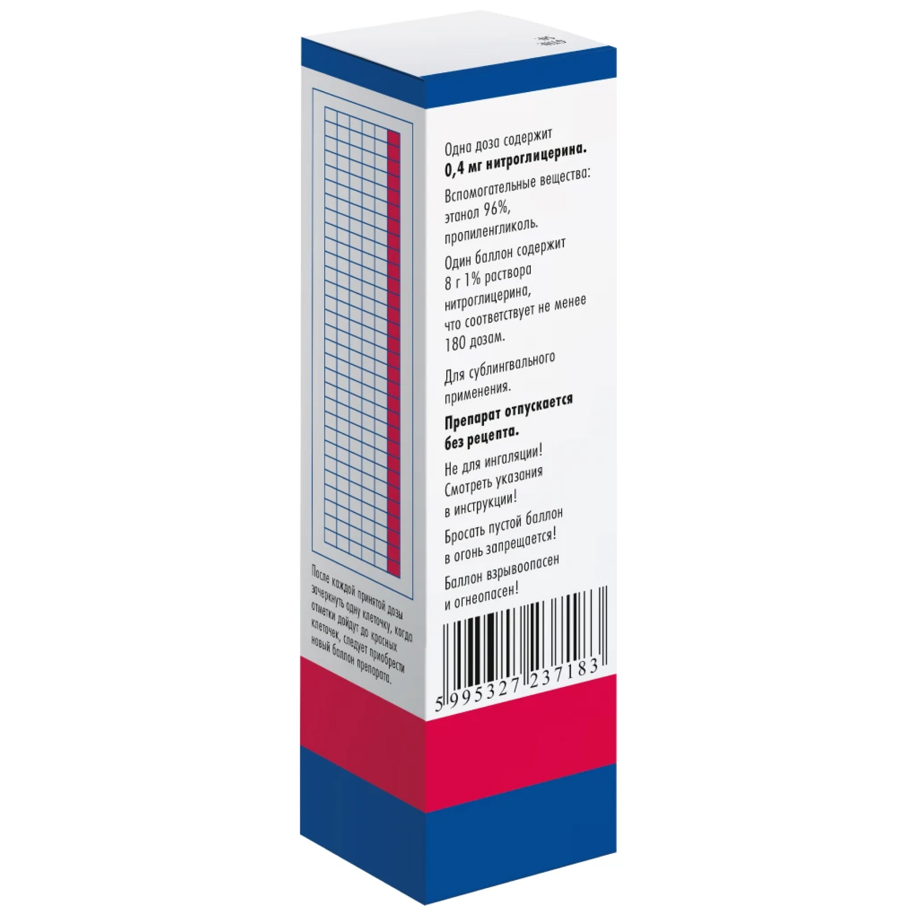 При использовании баллон следует держать его вертикально, распыляющей головкой вверх. Каждое нажатие на дозирующий клапан выпускает одну дозу (0,4 мг нитроглицерина) в виде спрея из баллона, снабженного механическим насосом.