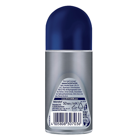 Дезодорант-антиперспирант ролик NIVEA MEN СЕРЕБРЯНАЯ ЗАЩИТА с уникальной антибактериальной формулой с ионами серебра для защиты от пота и запаха на 99,9%*. Ни один другой драгоценный металл не обладает столь сильными антибактериальными и противовоспалительными свойствами, как серебро. Кроме антибактериального эффекта, продукт успокаивает кожу и имеет свежий мужской аромат. Не содержит спирта и подходит даже для очень чувствительной кожи. Обеспечит вас надежной защитой от пота и неприятного запаха на срок до 48 часов. Шариковый антиперспирант даёт в 2 раза больше применений, чем спрей! Применение: нанести на чистую сухую область подмышек. Дать полностью высохнуть во избежание образования пятен на одежде. Не наносить на поврежденную или раздраженную кожу. *Тест in-vitro на содержание бакретий Corynebacterium Xerosis и Staphylococcus Epidermidi через 30 секунд после использования антиперспиранта.