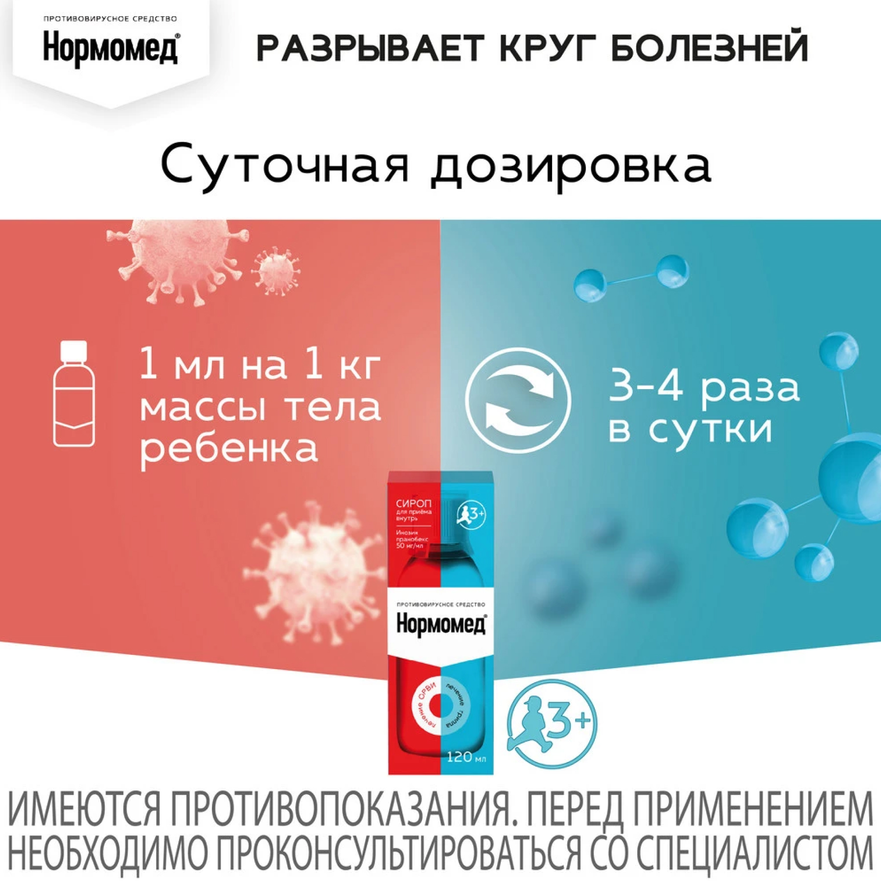Нормомед®, как и другие противовирусные средства, наиболее эффективен при острых вирусных инфекциях, если лечение начато на ранней стадии болезни (лучше с первых суток).
