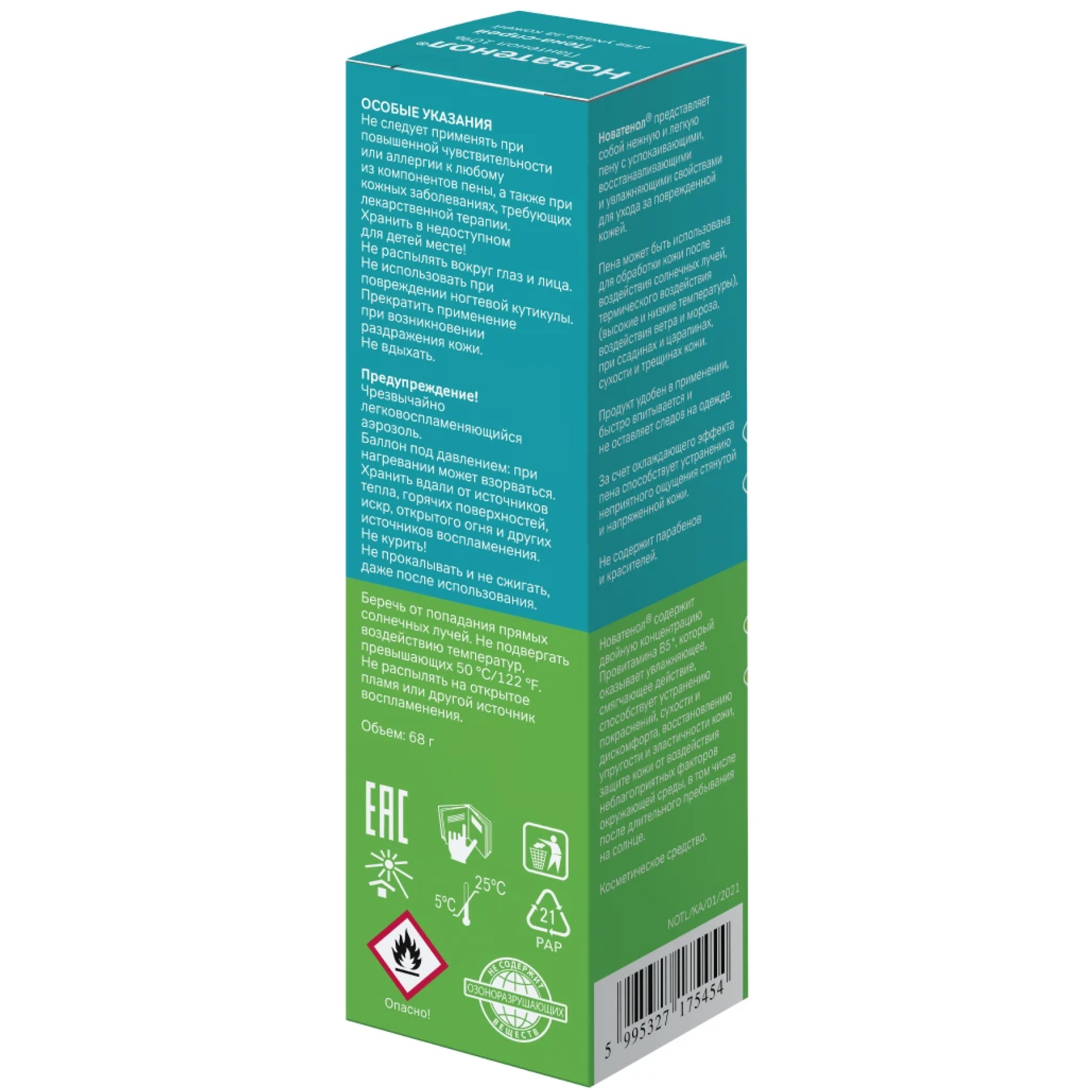 Новатенол® представляет собой нежную и легкую пену с успокаивающими,