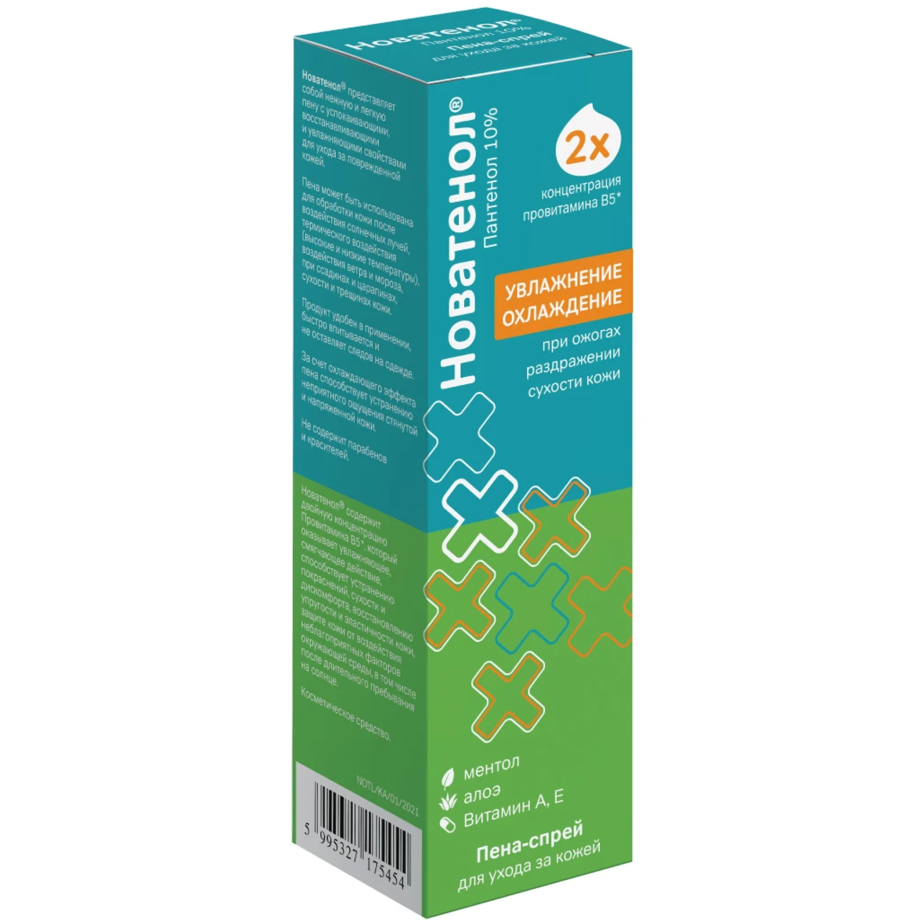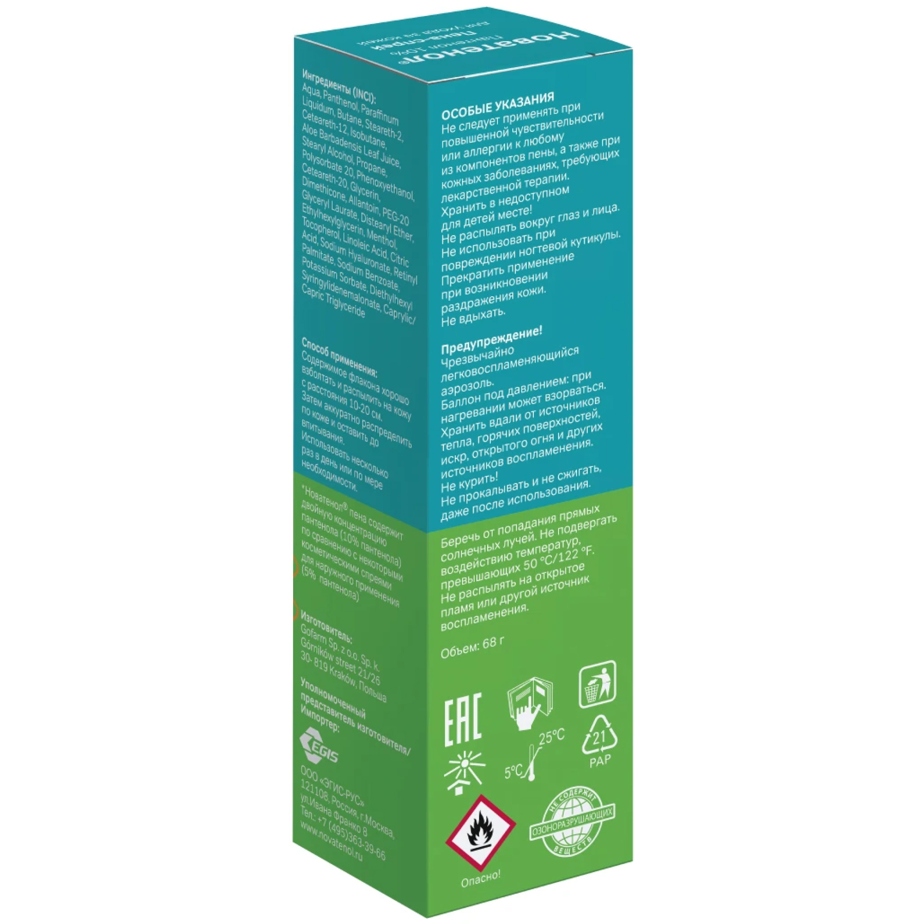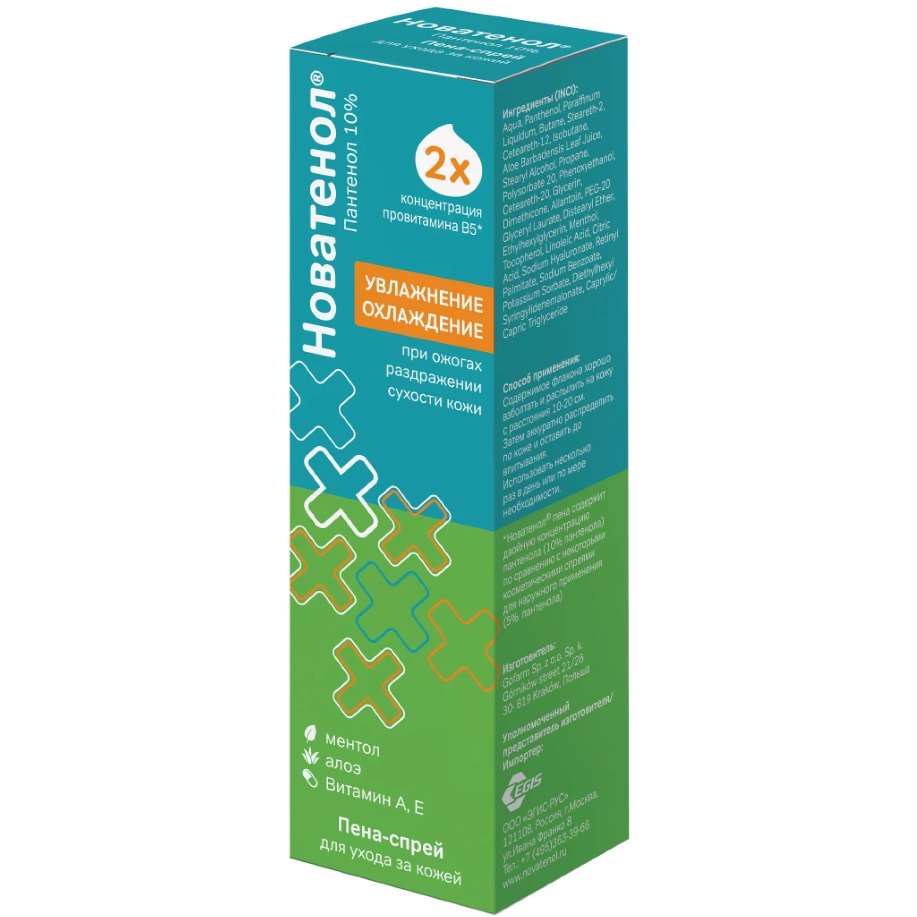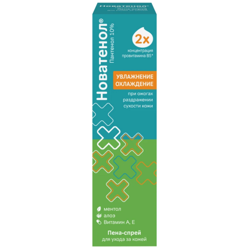 * Новатенол® пена-спрей содержит двойную концентрацию пантенола (10% пантенола) по сравнению с некоторыми косметическими спреями для наружного применения (5% пантенола).