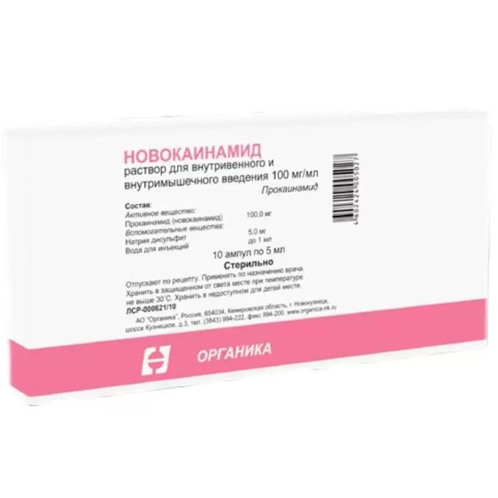 активное вещество: новокаинамид (прокаинамид) 100 мг;