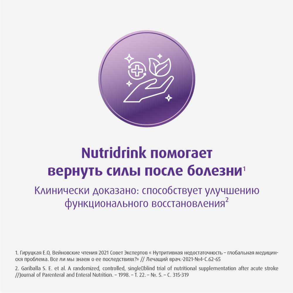 Нутридринк Компакт Протеин - полноценная и вкусная поддержка организма, когда это особенно нужно. Готовое к применению специализированное питание для людей с повышенными потребностями в белке, энергии, витаминах.