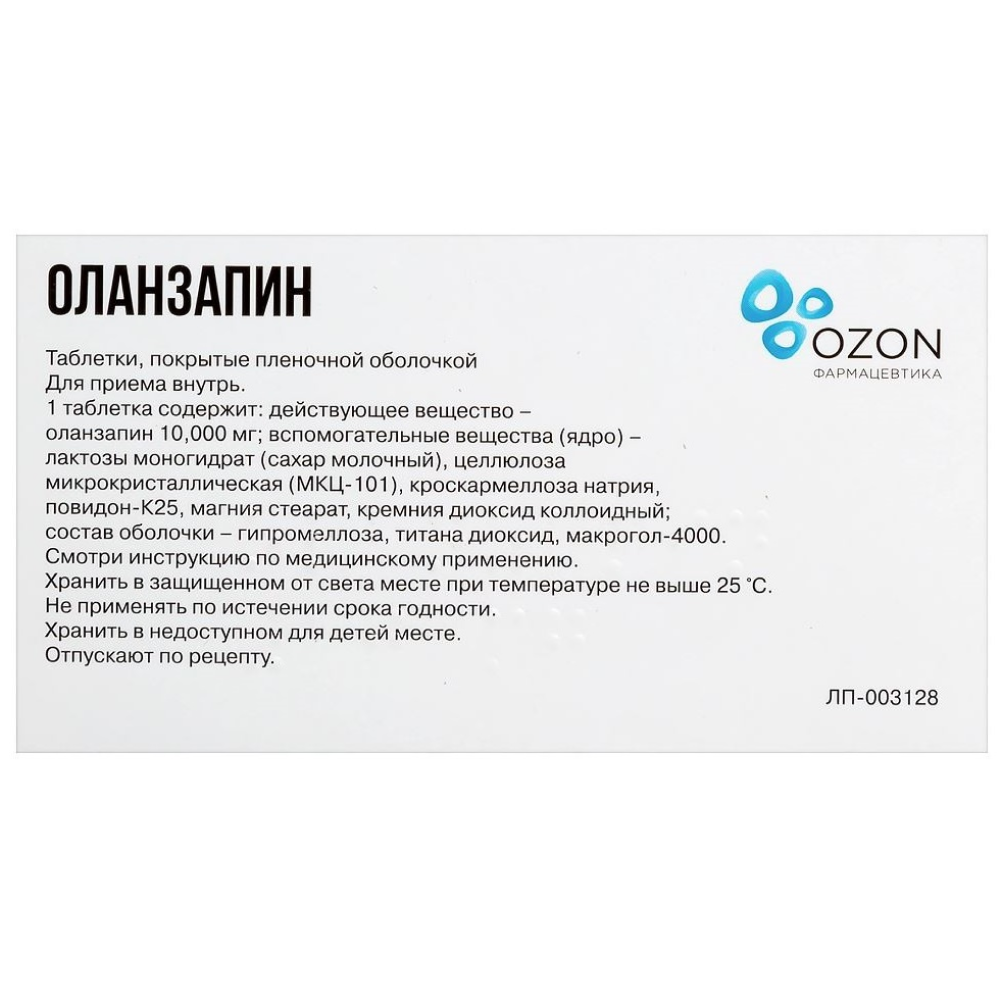 Активное вещество: оланзапин 10 мг.