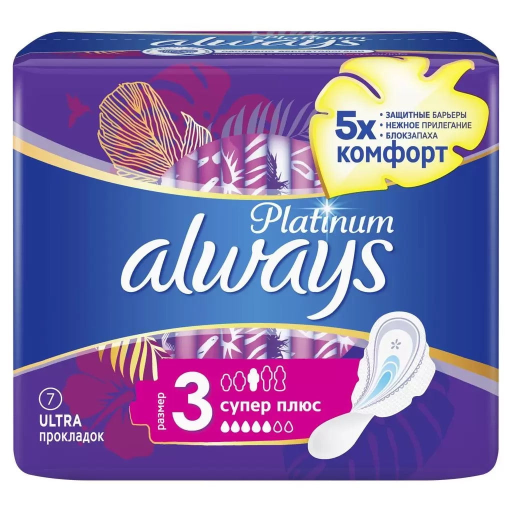 Always Platinum Супер Плюс (Размер 3) с крылышками рекомендованы для дневного использования при умеренных выделениях.