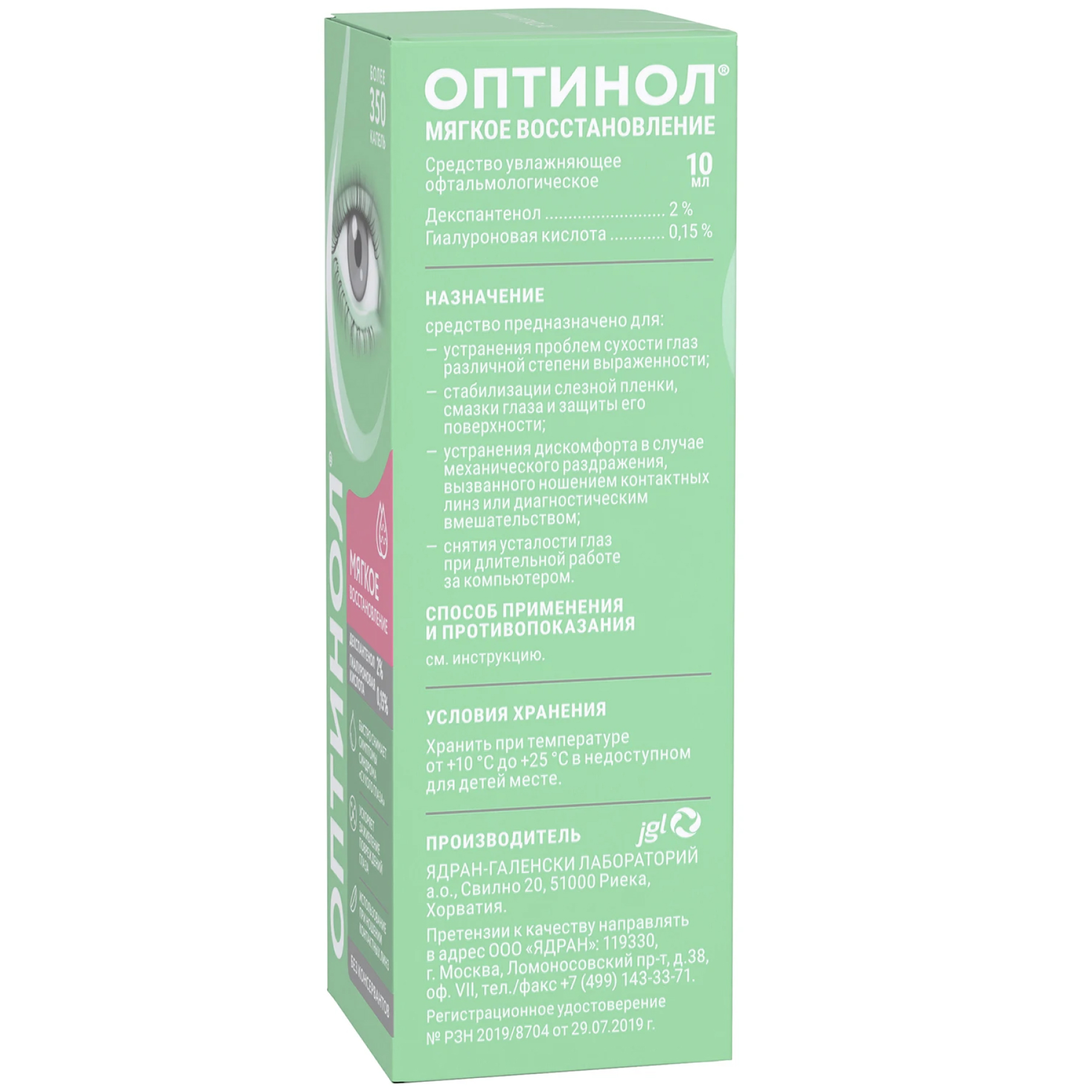Инструкция по применению Оптинол 10 мл средство офтальмологическое мягкое восстановление