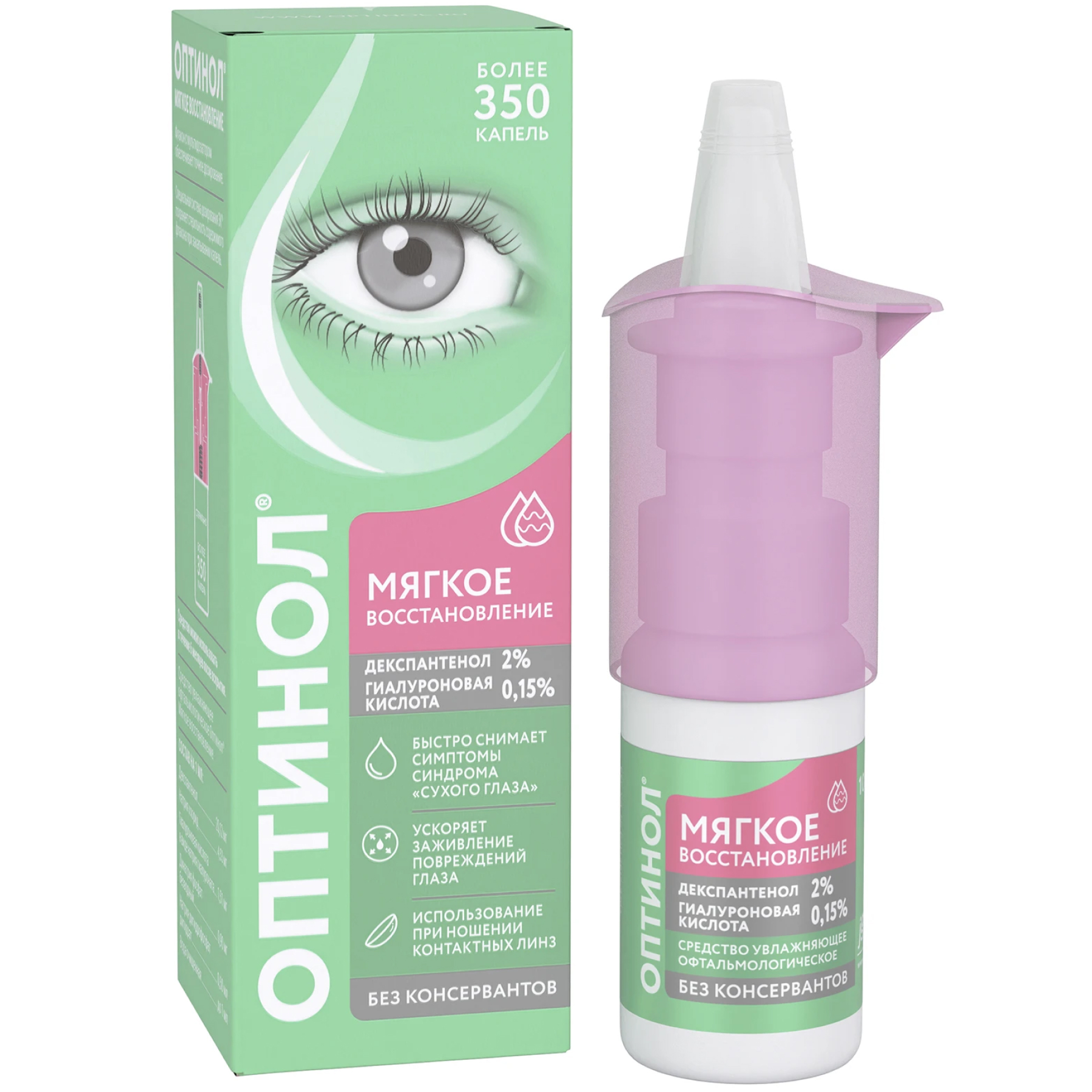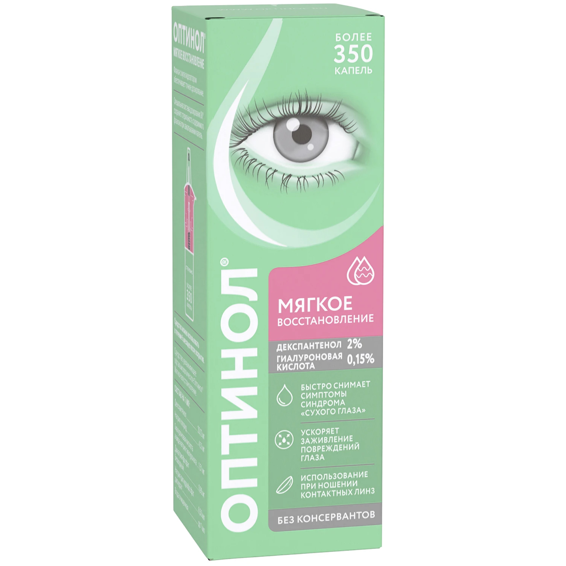 Средство увлажняющее офтальмологическое "Оптинол" Мягкое восстановление предназначено для интенсивного и длительного увлажнения глаз и показано к применению: