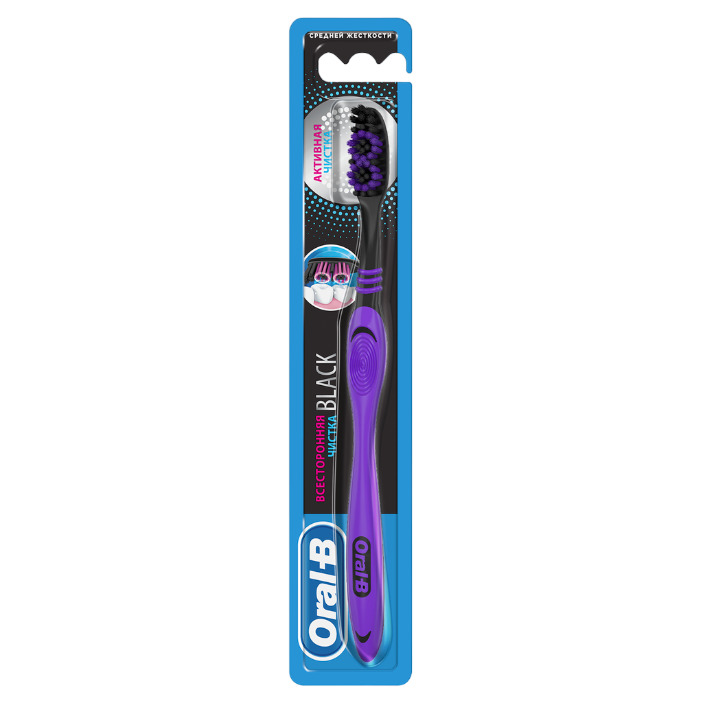 Мануальная зубная щетка Oral-B Всесторонняя чистка Black имеет расположенные в форме чаши щетинки, позволяющие очищать пространства между зубами и область вдоль линии десен. Расположенные в форме чаши щетинки позволяют очищать пространства между зубами и область вдоль линии десен Подушечка для чистки языка: способствует свежему дыханию Закругленные на концах щетинки бережно воздействуют на десны Эргономичная ручка.