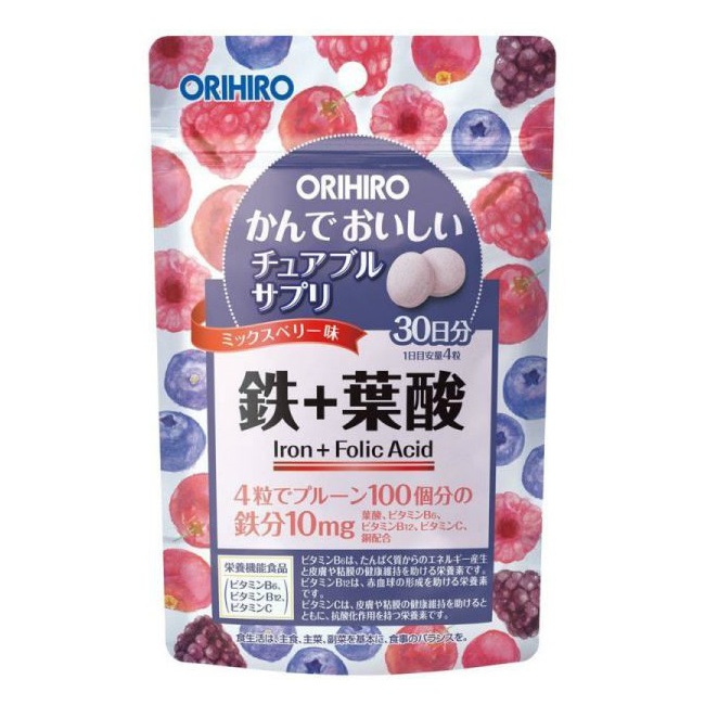 Биодобавка Orihiro в пищу в форме жевательных таблеток, предназначенная для восполнения дефицита железа и меди, витаминов группы B, аскорбиновой кислоты.