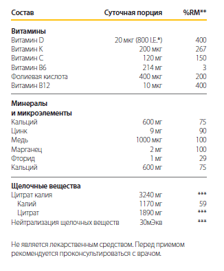 Концентрация минеральных солей в костной ткани восстанавливается постепенно, без резких колебаний и при регулярном приеме способствует усилению регенеративных процессов, нормализации функции опорно-двигательного аппарата, повышению качества жизни.