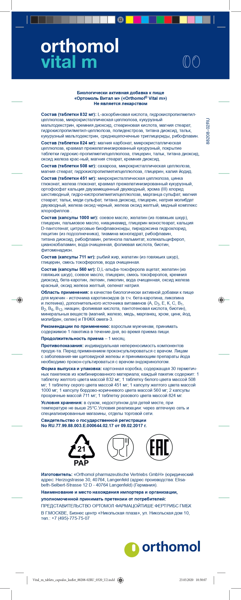 30-дневный курс Orthomol Vital M предназначен для мужчин, регулярно подвергающихся стрессу, однако еще не испытывающих явных признаков психоэмоционального расстройства. Кроме того, маленькая упаковка препарата подходит людям, сомневающимся в его эффективности. Около 80% представителей сильного пола, купивших ортомолекулярный комплекс "на пробу", уже через месяц отмечают значительное повышение работоспособности, стабилизацию психического фона, смягчение реакции на раздражающие факторы.