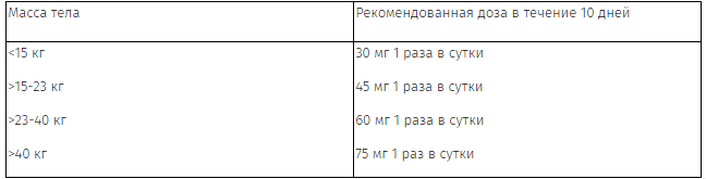 Рекомендованный режим дозирования осельтамивира капсулы 30 и 45 мг или экстемпорально приготовленной суспензии: