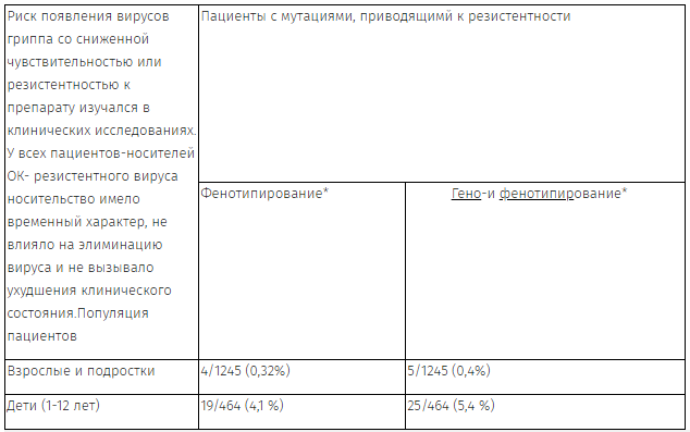 В исследованиях по профилактике гриппа профиль безопасности у пациентов, получавших рекомендованную дозу осельтамивира (75 мг 1 раз в сутки до 6 недель), не отличался от такового в исследованиях по лечению гриппа, несмотря на более длительный прием препарата.