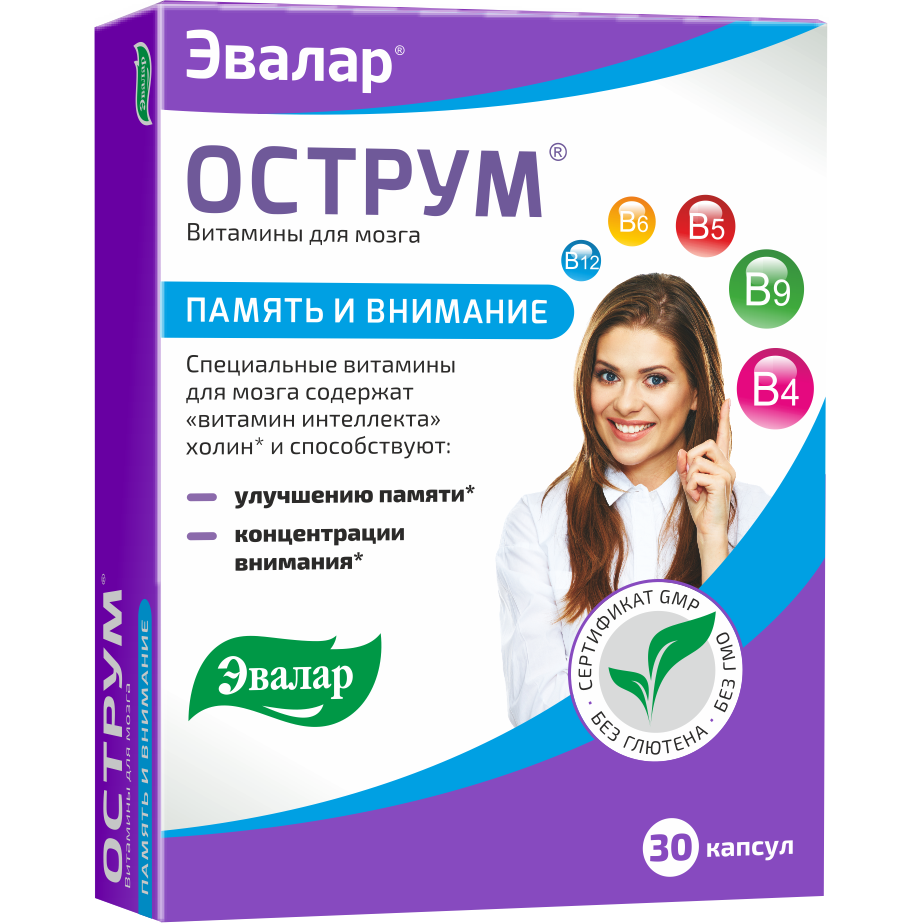 Снова забыли про важные дела и памятные даты? Внимание стало каким-то рассеянным? На решение простых задач стало уходить слишком много времени? Как помочь себе в этой ситуации? Чтобы улучшить память, внимание и умственную работоспособность, вам необходимы специальные витамины для мозга. Компания Эвалар предлагает особенный комплекс витаминов для мозга – Острум.