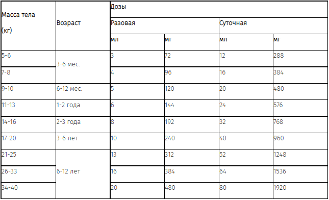 Доза препарата зависит от возраста и массы тела ребенка.