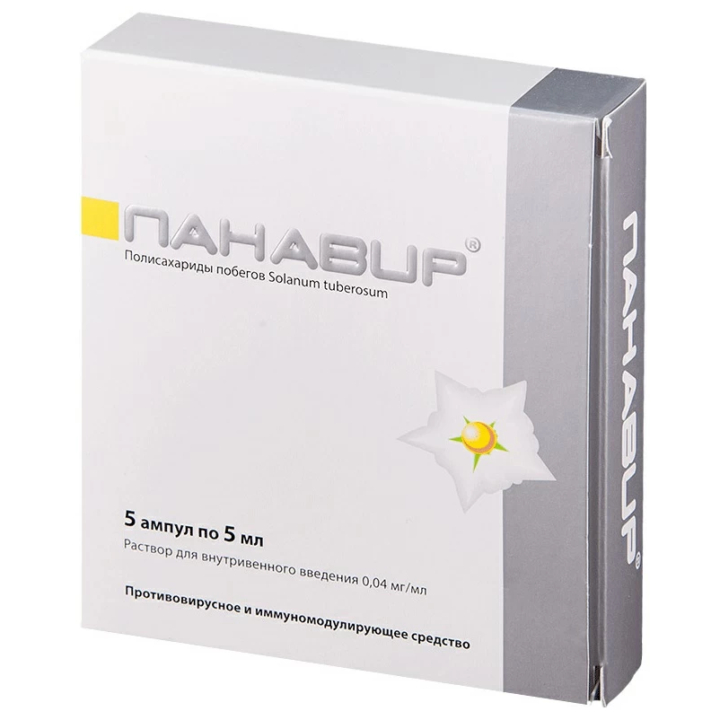 Панавир® очищенный экстракт побегов растения Solarium tuberosum, основное действующее вещество - гексозный гликозид, состоящий, из глюкозы, рамнозы, арабинозы, маннозы, ксилозы, галактозы, уроновых кислот.