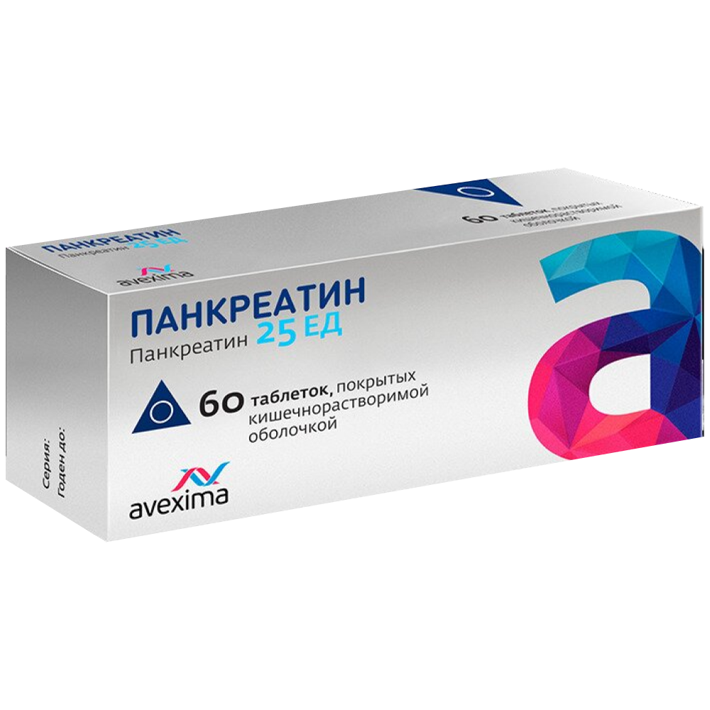 Активное вещество: панкреатин - 0.1 г (протеолитическая активность не менее - 25 ЕД, липолитическая активность не менее - 140 ЕД, амилолитическая активность не менее - 1500 ЕД).