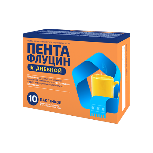 Пентафлуцин дневной применяется у взрослых для симптоматического лечения острых респираторных заболеваний (ОРЗ) и острых респираторных вирусных инфекций (ОРВИ), сопровождающихся высокой температурой, ознобом, головной и мышечной болью.