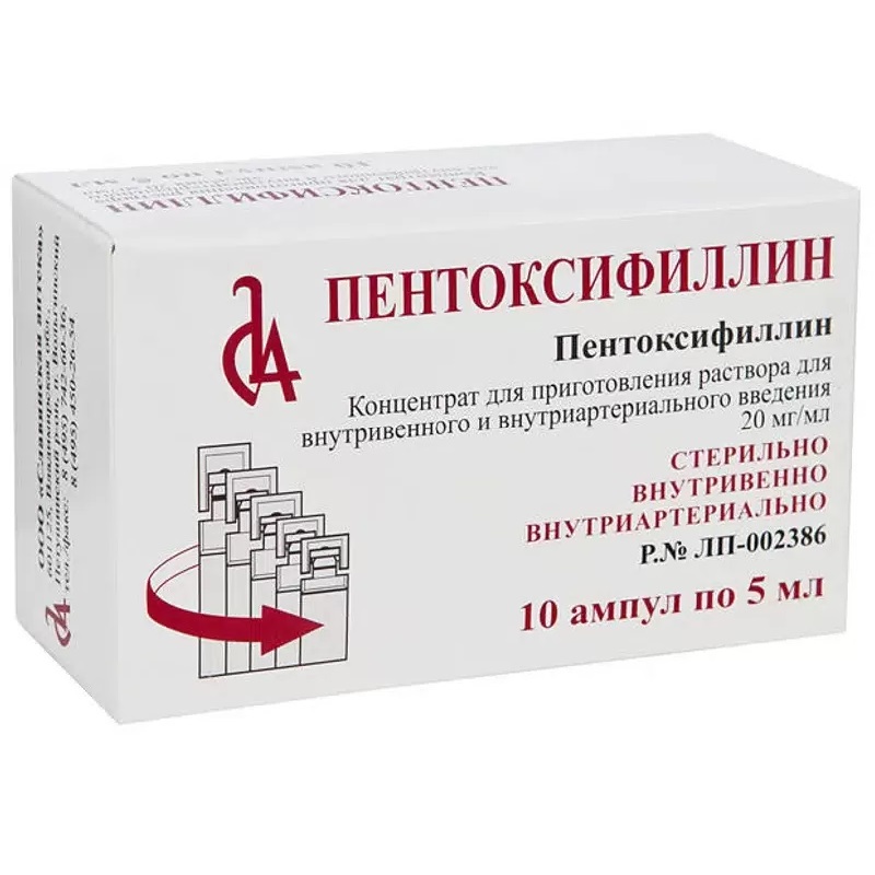 Пентоксифиллин является производным ксантина. Улучшает микроциркуляцию и реологические свойства крови. Механизм действия связан с угнетением фосфодиэстеразы и повышением содержания циклического 3,5 аденозинмонофосфата (3,5-АМФ) в тромбоцитах и аденозинтрифосфата (АТФ) в эритроцитах с одновременным насыщением энергетического потенциала, что в свою очередь приводит к вазодилатации, снижению общего периферического сосудистого сопротивления, возрастанию систолического и минутного объема крови без значительного изменения частоты сердечных сокращений. Расширяя коронарные артерии, увеличивает доставку кислорода к миокарду (незначительный антиангинальный эффект), сосуды легких - улучшает оксигенацию крови.