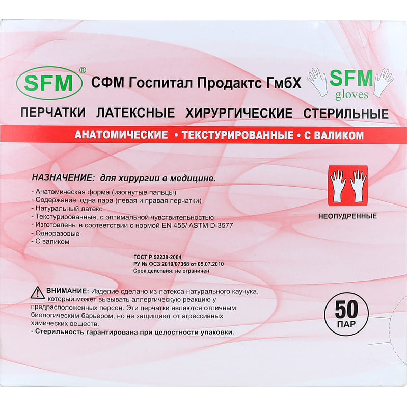 Перчатки хирургические sfm латексные №7,5 - это стерильные анатомические неопудренные текстурированные перчатки с внутренним полимерным покрытием. Анатомические - разделение на правую и левую руки . Манжета стандартная, с валиком. Не содержат пудры, что снижает риск возникновения аллергических реакций и кожных раздражений. Отделка внешней поверхности: текстурированные, микрошероховатая поверхность по всей площади, что обеспечивает надежный захват инструмента и безопасность манипуляций. Внутреннее полимерное покрытие - специализированное внутреннее покрытие, для облегчения надевания перчатки. Стерильные - стерилизация оксидом этилена.