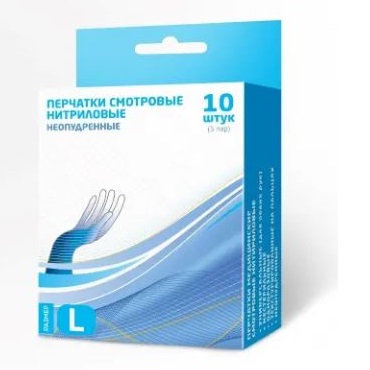 Перчатки смотровые нитриловые, неопудренные, нестерильные.
