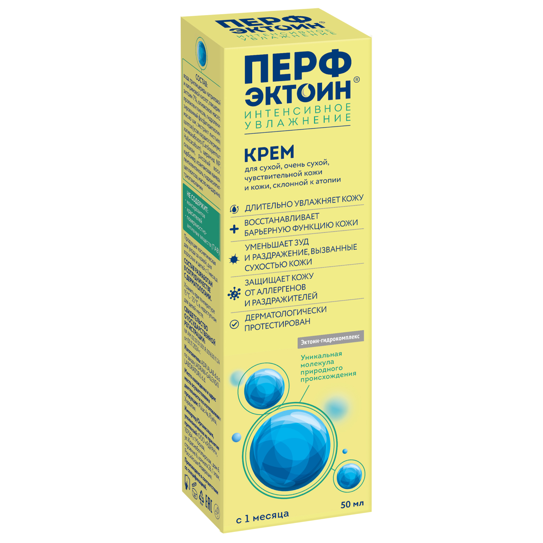 ПЕРФЭКТОИН® ИНТЕНСИВНОЕ УВЛАЖНЕНИЕ — увлажняющий крем, формула которого разработана специально для ухода за кожей, склонной к атопии, а также сухой, очень сухой и чувствительной кожей лица и тела, и может использоваться у детей с 1 месяца и взрослых, включая беременных и кормящих женщин.