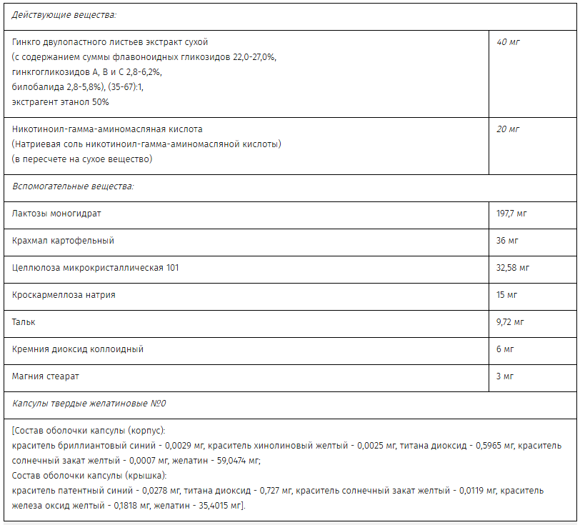 Пик плазменной концентрации составлял 16-22 нг/мл для гинкголида А, 8-10 нг/мл для гинкголида В и 27-54 нг/мл для билобалида после применения внутрь в форме таблеток. Связывание с белками плазмы крови составляет: 43% для гинкголида А, 47% для гинкголида В и 67% для билобалида.