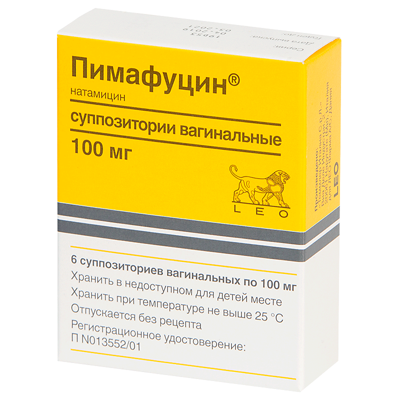 При вагинитах, вульвитах, вульвовагинитах назначают по 1 суппозиторию вагинальному в течение 3-6 дней. Суппозиторий вводят во влагалище в положении лежа, как можно глубже, 1 раз в сутки на ночь. При упорном течении вагинитов, вызванных Candida albicans, дополнительно назначают Пимафуцин® в виде таблеток для приема внутрь (по 1 таб. 4 раза в сутки в течение 10-20 дней) для санации очага кандидозной инфекции в кишечнике. Для лечения кандидозного поражения половых органов партнера используют Пимафуцин® в форме крема. Продолжительность курса лечения устанавливают индивидуально. После исчезновения симптомов заболевания рекомендуется продолжать лечение еще несколько дней.