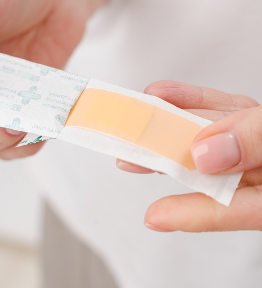 Перед применением пластыря нужно очистить поврежденный участок кожи. Чистыми сухими руками извлечь пластырь из индивидуальной упаковки, как показано на наших фото, и аккуратно, не прикасаясь к сорбционной подушечке пальцами, приложить на поврежденную поверхность кожи. Края пластыря надежно зафиксировать, не допуская возникновения складок.