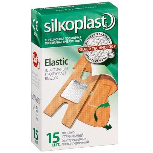 Пластыри изготовлены из: тонкой микроперфорированной полимерной пленки телесного цвета, покрытой гипоаллергенным клеем, сорбционная атравматичная бактерицидная подушечка пропитана серебром.