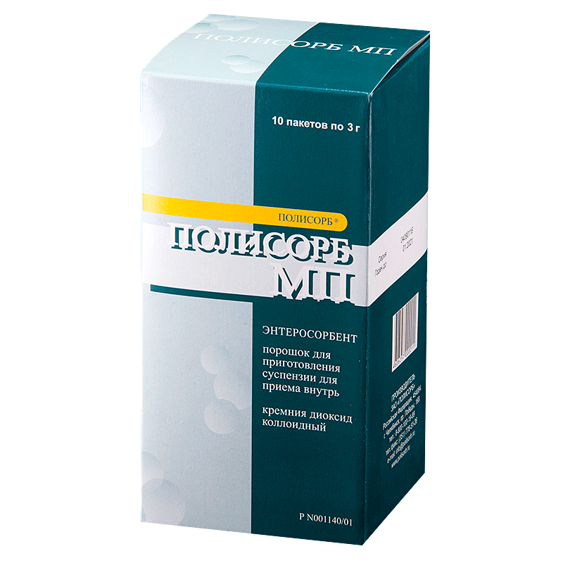 Полисорб® МП - неорганический неселективный полифункциональный энтеросорбент на основе высокодисперсного кремнезема с размерами частиц до 0.09 мм и с химической формулой SiO2.
