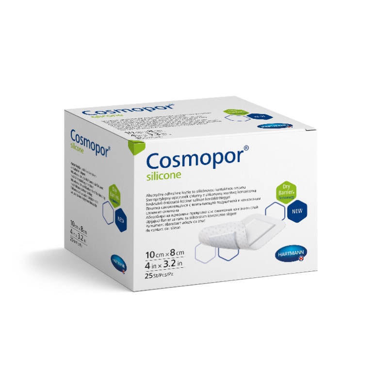 Cosmopor® silicone/Кocмoпop силикон представляет собой неактивную одноразовую самоклеящуюся стерильную и полупроницаемую повязку на рану (гидроцеллюлярную тонкую повязку), состоящую из нетканого материала основы (материала-носителя) и впитывающей подушечки для раны. Обе части повязки покрыты силиконовым клеевым перфорированным слоем и защищены пленкой.