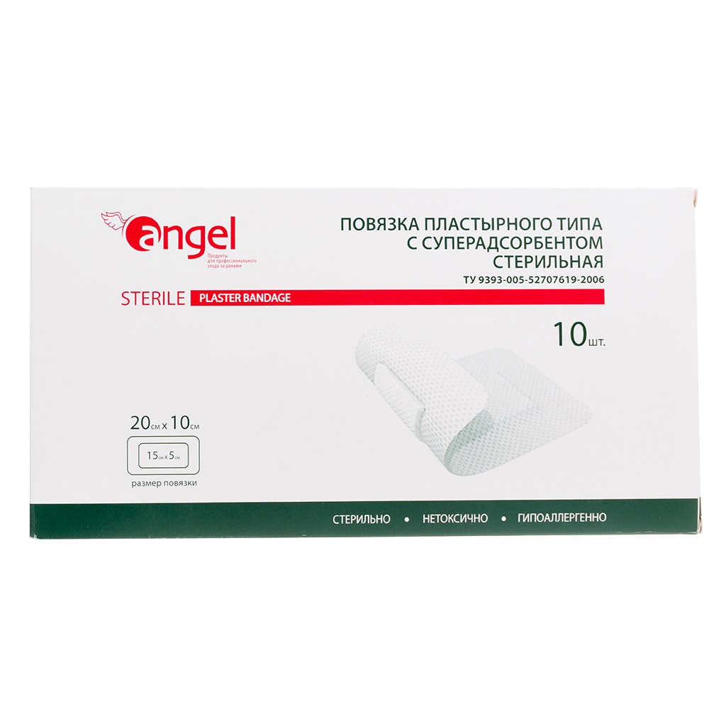 Повязки с суперадсорбентом «Angel» используются для первичной и первично-отсроченной обработки ран, профилактики вторичного инфицирования ран госпитальными штаммами микроорганизмов (травмы мягких и костных тканей, ожоги, гнойные раны). Повязки стерилизуются радиационным способом, выпускаются в индивидуальной упаковке.